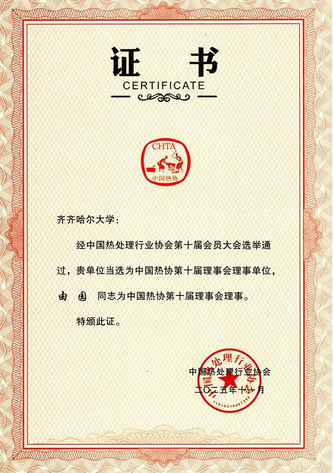 当选为中国热协理事单位和理事,为我校深化行业合作搭建了更紧密的桥梁,学校将以此为契机,进一步深化与热处理行业的产学研合作,主动融入国家制造强国战略,服务行业高质量发展,持续发挥材料学科优势,以技术创新与人才培养为抓手,为我国热处理行业转型升级、助力中国式现代化建设贡献“hth华体官方下载APP下载力量”。