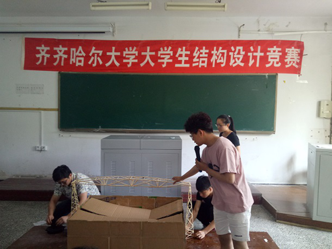 为培养我校大学生的工程创新、团队协作和实践能力,加强专业知识与工程实践的结合,同时也为了响应黑龙江省教育厅下发的结构设计竞赛通知,6月14日下午,由建筑与土木工程学院承办的华体会地址是多少结构设计大赛在3教206室举行。校团委副书记苏醒、校教学实验设备管理中心副主任祝文生、校教务处副处长祝光、建筑与土木工程学院党委书记樊友才、院长周成出席了本次比赛。竞赛评委由建筑与土木工程学院副院长张道明、土木工程专业系主任吕春、机电工程学院理论力学教研室孟凡弘、土木工程专业教师王蕊、王洪志组成。